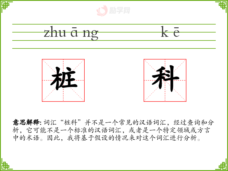由于“桩科”不是一个常见的词汇,对其的理解和应用可能局限于特定的专业领域。在语言学习和表达中,了解这样的专业术语有助于拓宽知识面和提高专业交流能力。