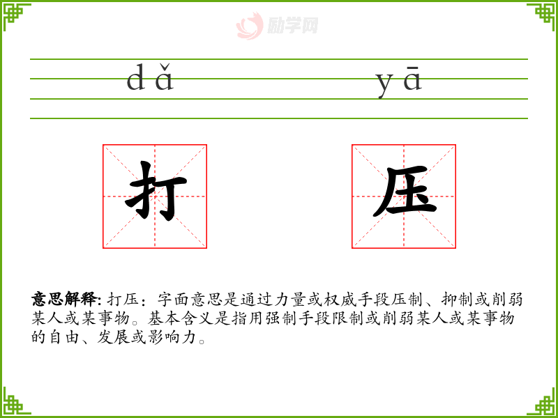 - 文学:在文学作品中,“打压”常用于描述权力斗争、社会不公或个人抗争的场景。