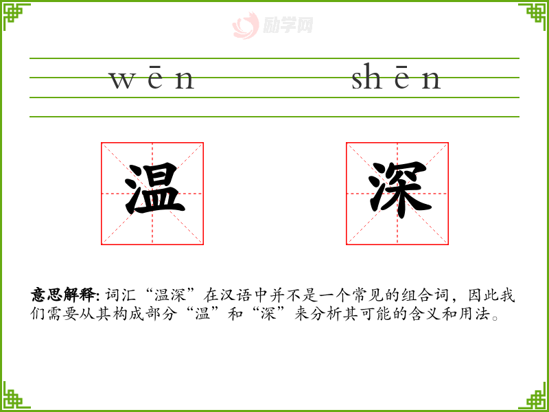 词汇“温深”在汉语中并不是一个常见的组合词,因此我们需要从其构成部分“温”和“深”来分析其可能的含义和用法。
