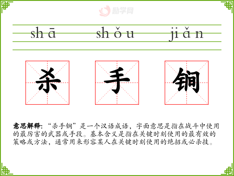 1.杀手锏的拼音是什么?杀手锏怎么读?