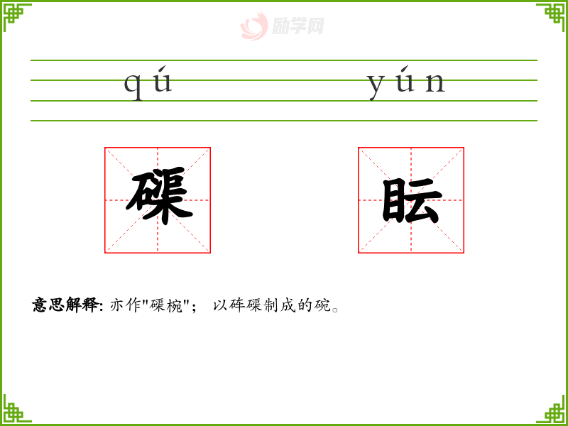 磲[ qú ] 1. (chēqú)。 [更多解释]
