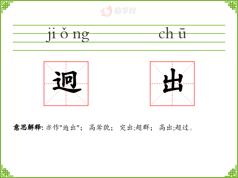 迥出的意思是:亦作"逈出"; 高耸貌; 突出;超群; 高出;超过。