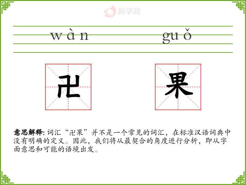 词汇“卍果”并不是一个常见的词汇,在标准汉语词典中没有明确的定义。因此,我们将从最契合的角度进行分析,即从字面意思和可能的语境出发。