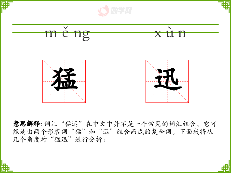 的分字组词猛迅