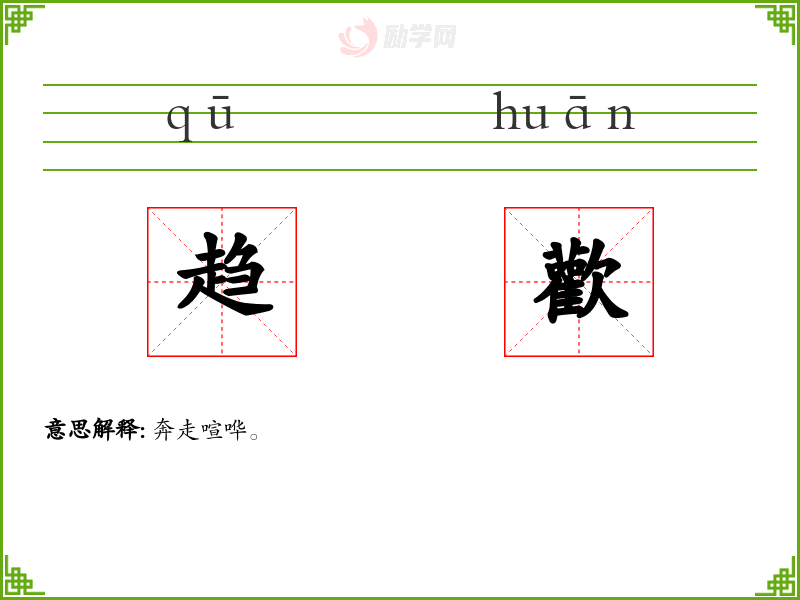 趋歡的意思是:奔走喧哗。