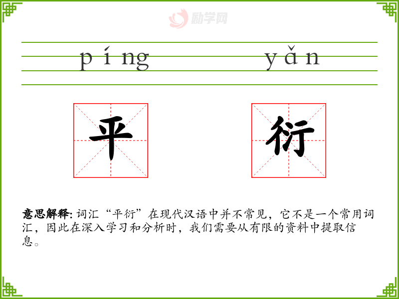 词汇“平衍”在现代汉语中并不常见,它不是一个常用词汇,因此在深入学*和分析时,我们需要从有限的资料中提取信息。