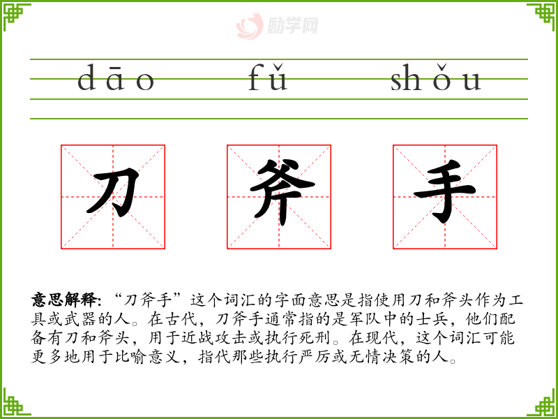 1.刀斧手的拼音是什么?刀斧手怎么读?
