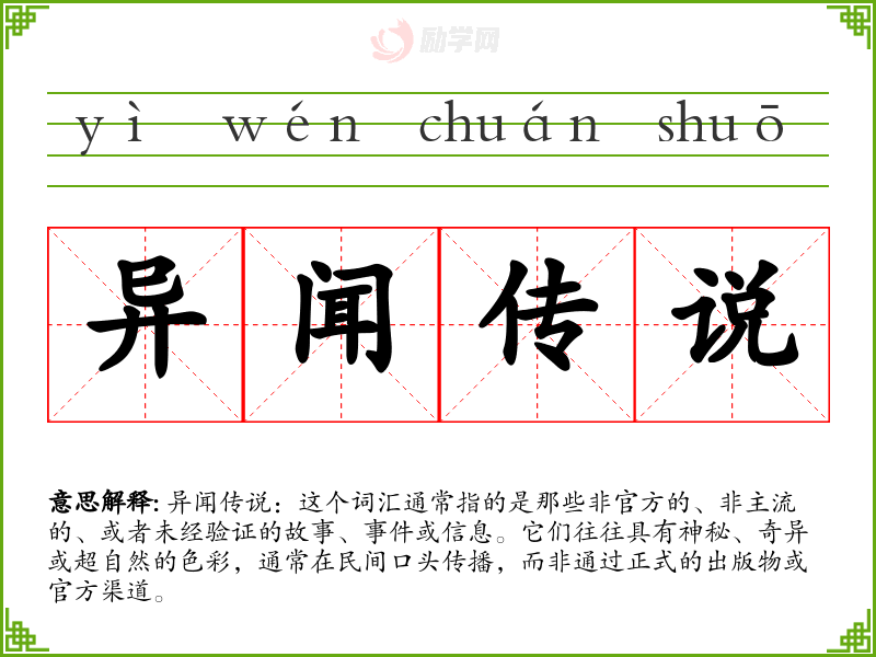 1.异闻传说的拼音是什么?异闻传说怎么读?