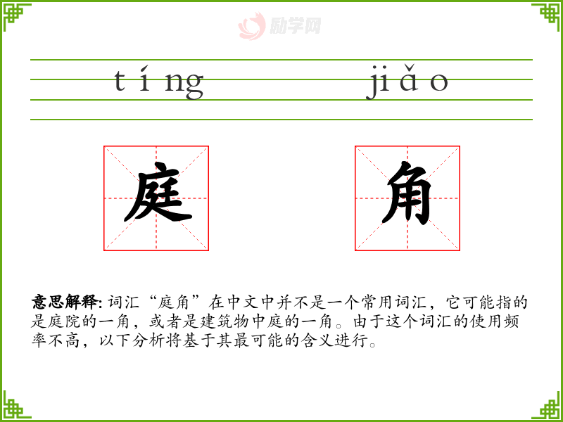 1.庭角的拼音是什么?庭角怎么读?