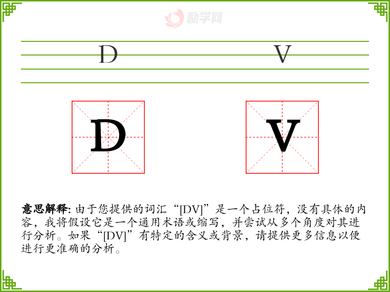 由于您提供的词汇“[DV]”是一个占位符,没有具体的内容,我将假设它是一个通用术语或缩写,并尝试从多个角度对其进行分析。如果“[DV]”有特定的含义或背景,请提供更多信息以便进行更准确的分析。