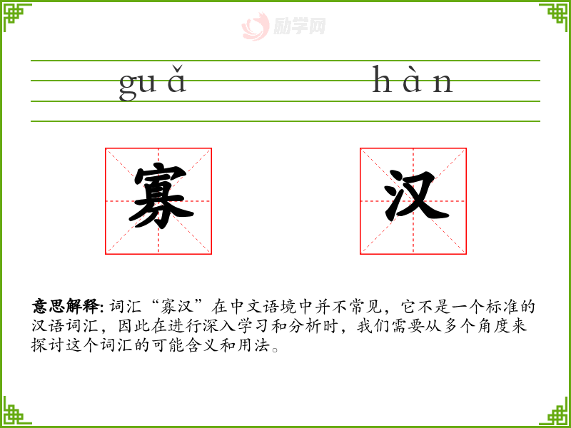 词汇“寡汉”在中文语境中并不常见,它不是一个标准的汉语词汇,因此在进行深入学习和分析时,我们需要从多个角度来探讨这个词汇的可能含义和用法。
