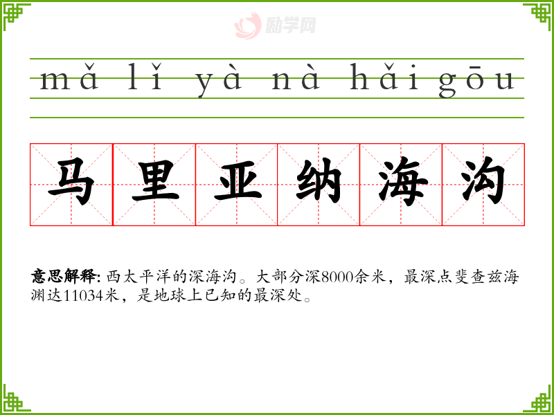 1.马里亚纳海沟的拼音是什么?马里亚纳海沟怎么读?