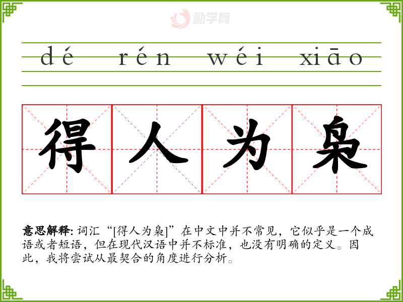 由于“[得人为枭]”不是一个标准的汉语词汇,我们无法对其进行深入的分析和理解。在语言学习和表达中,我们应该关注常用和标准的词汇,以确保沟通的准确性和有效性。