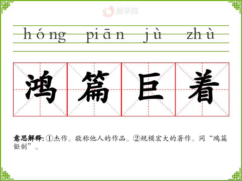 1.鸿篇巨着的拼音是什么?鸿篇巨着怎么读?