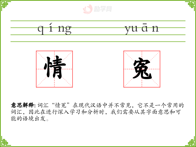 词汇“情冤”在现代汉语中并不常见,它不是一个常用的词汇,因此在进行深入学习和分析时,我们需要从其字面意思和可能的语境出发。