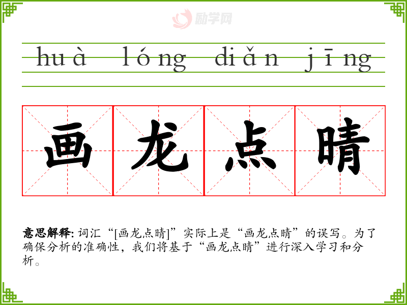 词汇“[画龙点晴]”实际上是“画龙点睛”的误写。为了确保分析的准确性,我们将基于“画龙点睛”进行深入学*和分析。