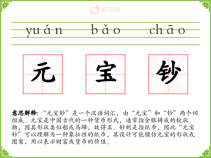 1.元宝钞的拼音是什么?元宝钞怎么读?