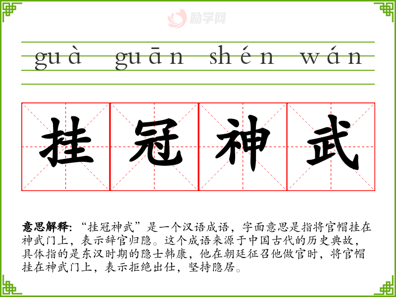 1.挂冠神武的拼音是什么?挂冠神武怎么读?