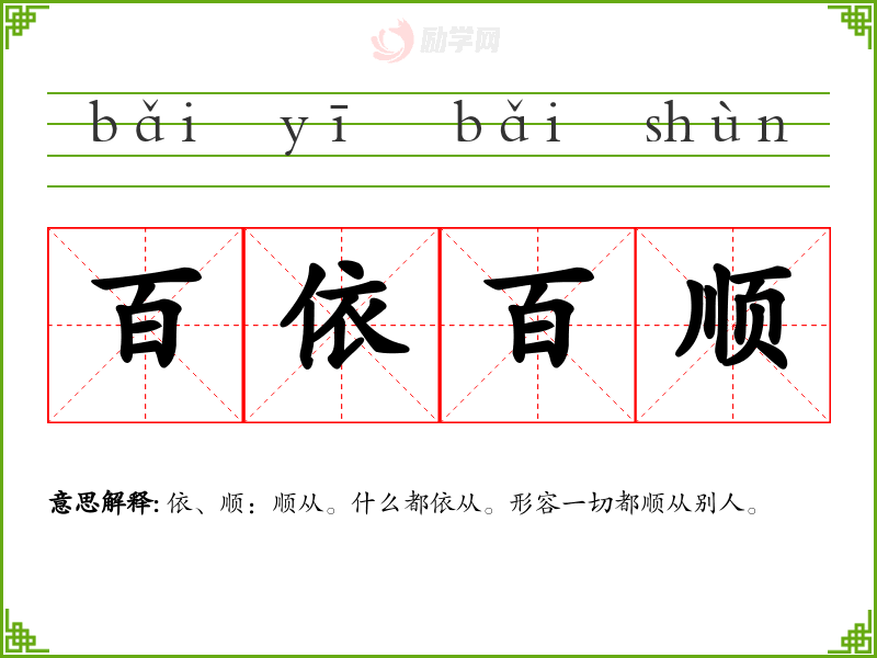 依、顺:顺从。什么都依从。形容一切都顺从别人。