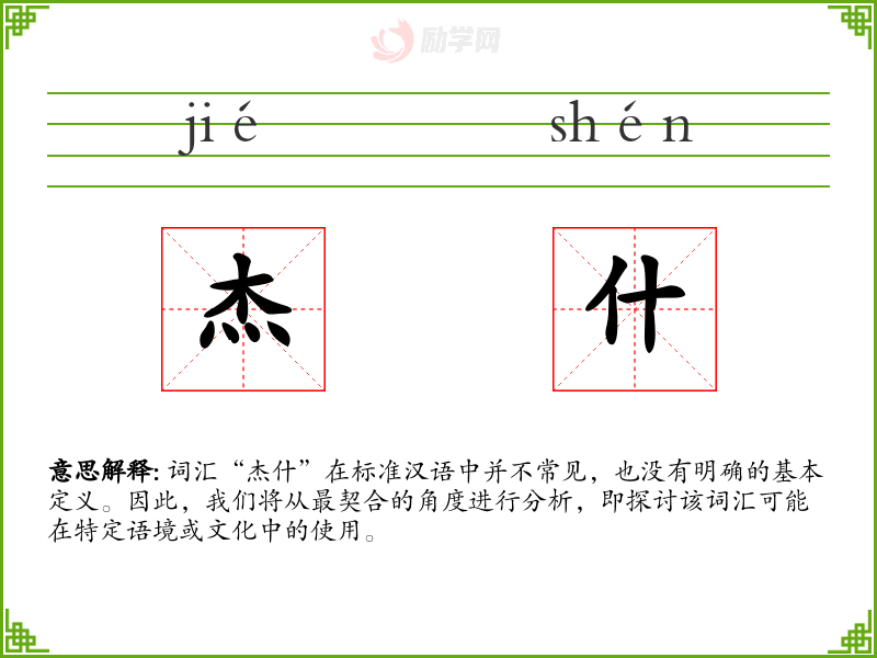 由于“杰什”不是一个标准汉语词汇,它可能是一个外来词,或者是某个特定社群或方言中的词汇。在没有更多信息的情况下,我们无法给出确切的基本定义。