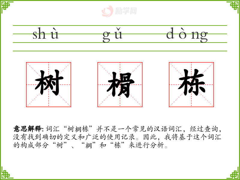 由于“树棡栋”不是一个标准词汇,创造性使用不详。