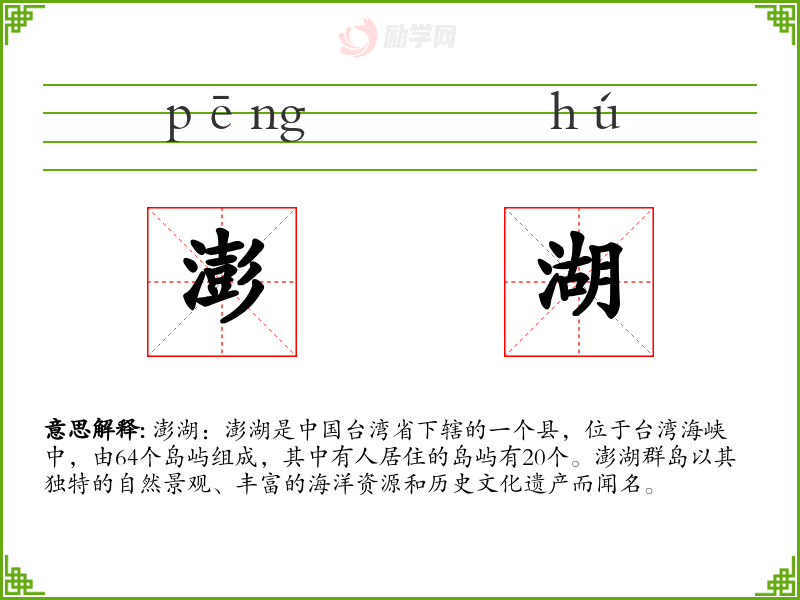 1.澎湖的拼音是什么?澎湖怎么读?