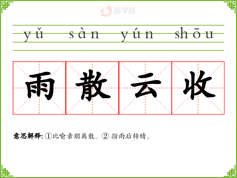 1.雨散云收的拼音是什么?雨散云收怎么读?