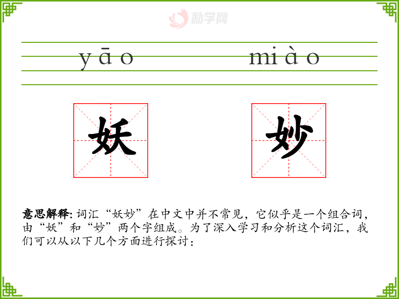 1.妖妙的拼音是什么?妖妙怎么读?