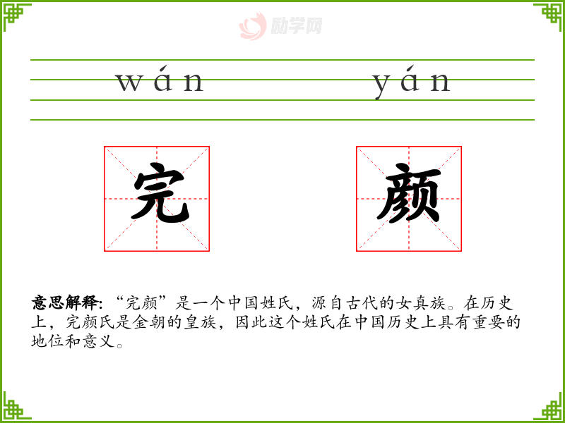 - 专业领域:在历史学、民族学等领域,“完颜”是一个重要的研究对象,尤其是在研究金朝历史和女真族文化时。