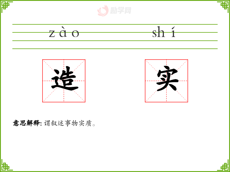 《说文》-造,就也。 《书·盘庚》-咸造勿亵在王庭。 《周礼·司门》-凡四方之宾 客造焉。 《仪礼·士丧礼》-造于西阶下。 《战国策·宋策》-而造大国之城下。 陶渊明《五柳先生传》-造饮辄尽。 唐·柳宗元《柳河东集》-明日造朝。 宋·沈括《梦溪笔谈》-造玉清宫。 清·方苞《左忠毅公逸事》-造左公第。 清·梁启超《谭嗣同传》-径造袁所寓之法华寺。