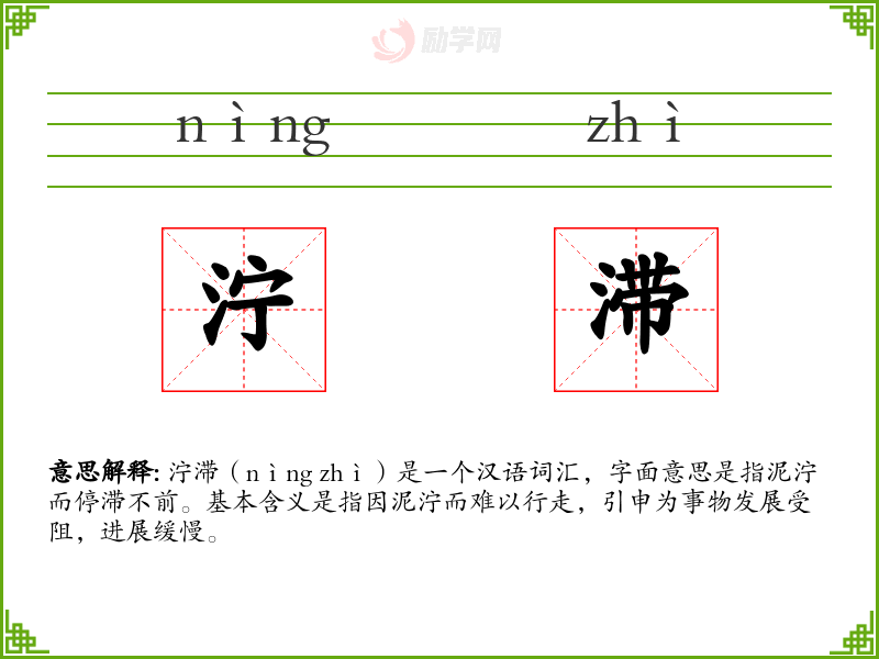 泞滞(nìng zhì)是一个汉语词汇,字面意思是指泥泞而停滞不前。基本含义是指因泥泞而难以行走,引申为事物发展受阻,进展缓慢。
