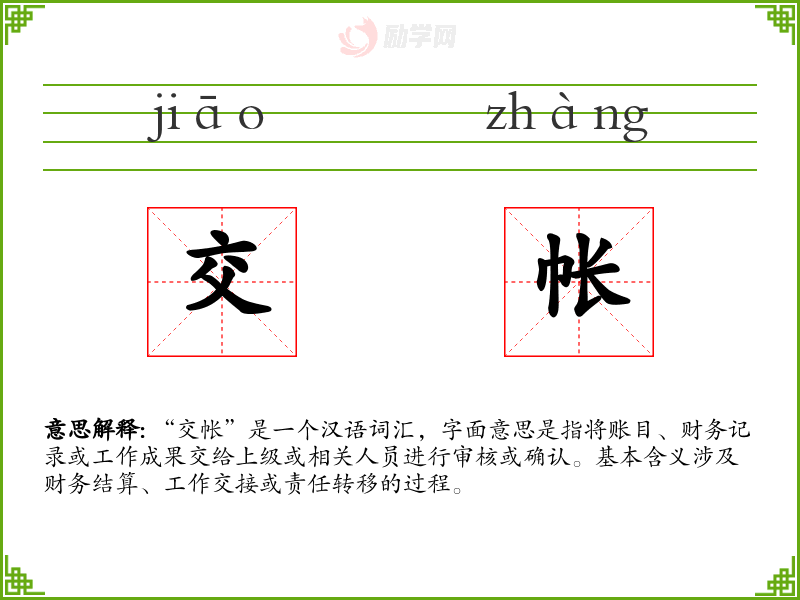 1.交帐的拼音是什么?交帐怎么读?