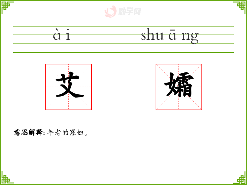 艾孀的意思是:年老的寡妇。