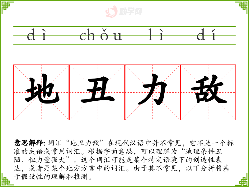 1.地丑力敌的拼音是什么?地丑力敌怎么读?