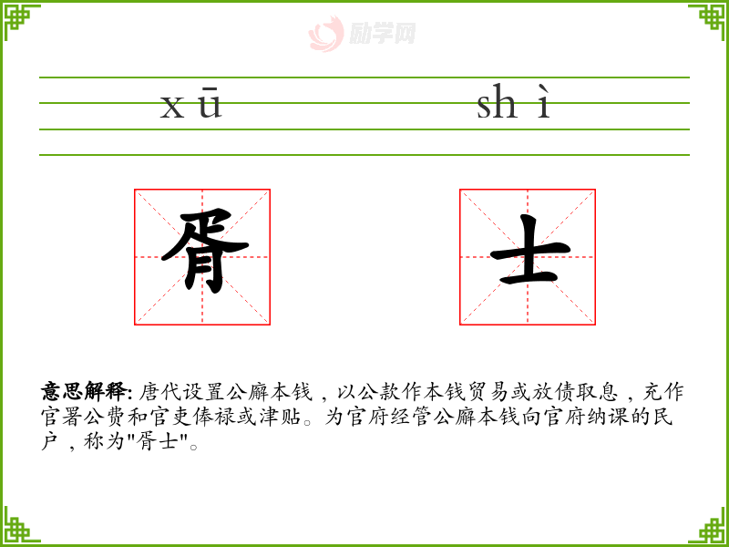 胥士的意思是:唐代设置公廨本钱﹐以公款作本钱贸易或放债取息﹐充作官署公费和官吏俸禄或津贴。为官府经管公廨本钱向官府纳课的民户﹐称为"胥士"。