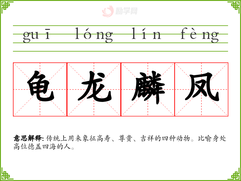 1.龟龙麟凤的拼音是什么?龟龙麟凤怎么读?
