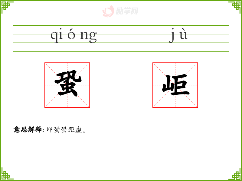 蛩[ qióng ] 1. 蝗虫的别名。 【引证】 《淮南子》-飞蛩满野。 [更多解释]