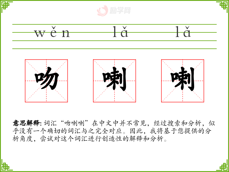 由于“吻喇喇”不是一个标准的汉语词汇,我们可以尝试从字面意思来解释: