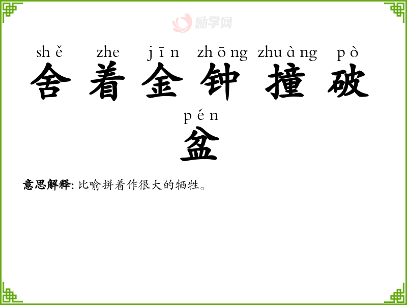1.舍着金钟撞破盆的拼音是什么?舍着金钟撞破盆怎么读?