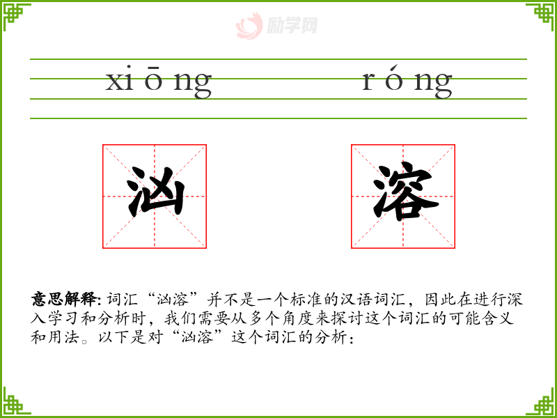 词汇“汹溶”并不是一个标准的汉语词汇,因此在进行深入学习和分析时,我们需要从多个角度来探讨这个词汇的可能含义和用法。以下是对“汹溶”这个词汇的分析: