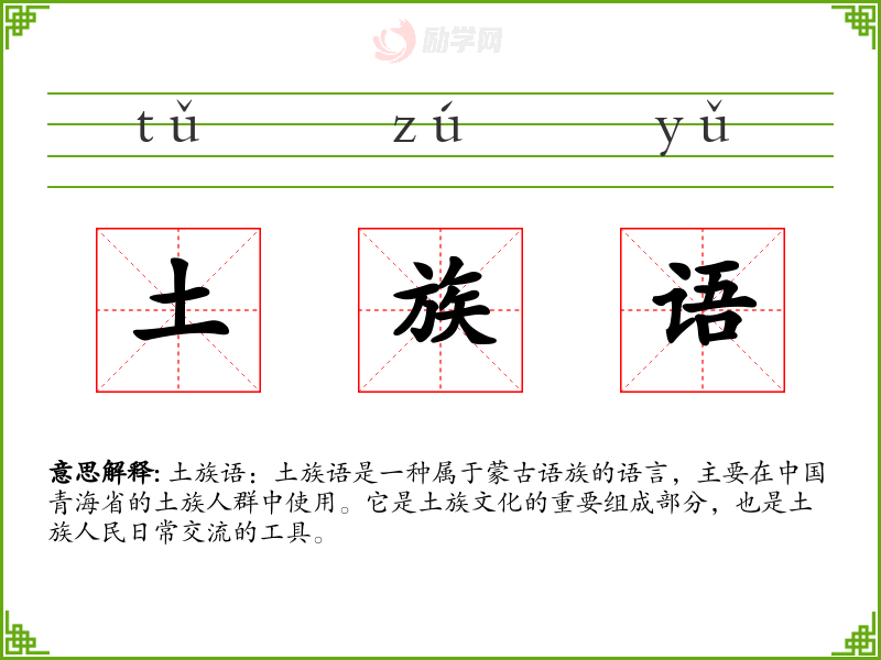 - 专业领域:在民族学、语言学等领域,土族语的研究对于理解蒙古语族的语言特点和文化背景具有重要意义。