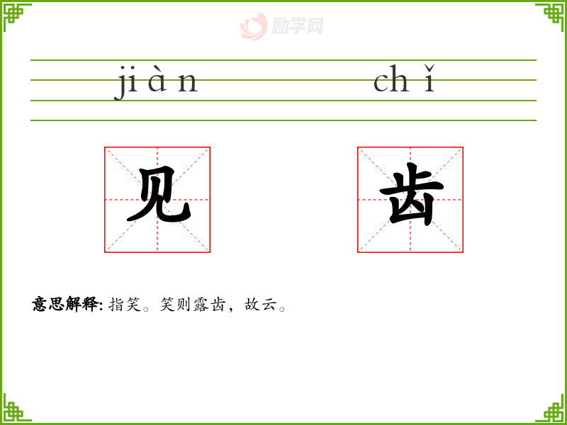 (象形。甲骨文,象嘴里的牙齿,象形字。战国文字在上面加了个声符“止”,成为形声字。小篆同。本义:牙)。