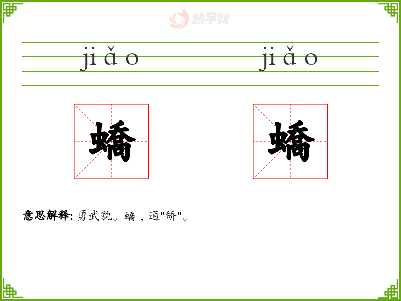 1.勇武貌。蟜﹐通"矫"。