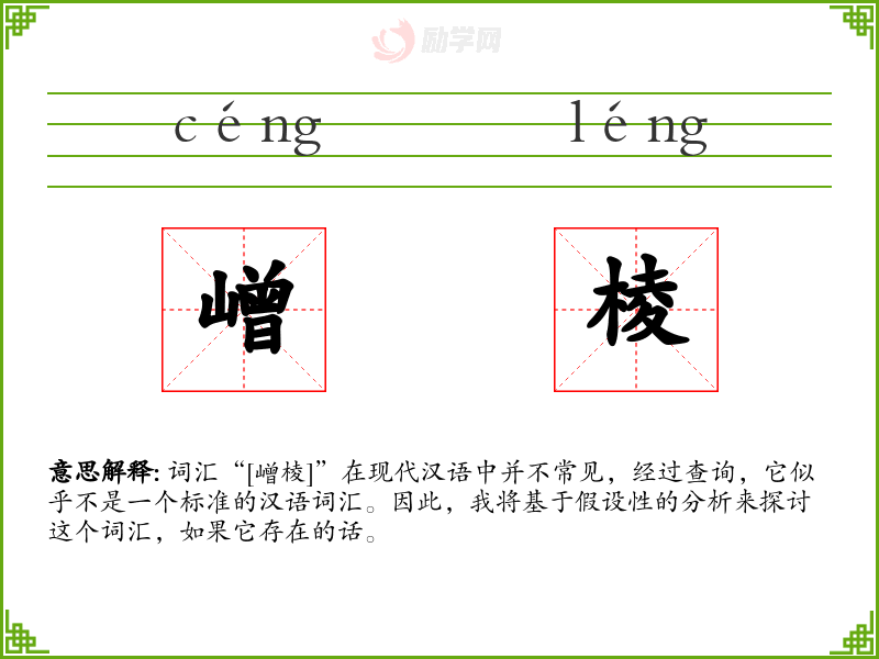 尽管“嶒棱”不是一个实际存在的词汇,通过假设性的分析,我们可以看到词汇在语言中的丰富性和多样性。在语言学习中,理解和掌握词汇的细微差别和使用场景是非常重要的。