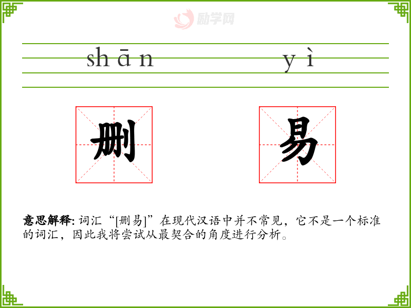 词汇“[删易]”在现代汉语中并不常见,它不是一个标准的词汇,因此我将尝试从最契合的角度进行分析。