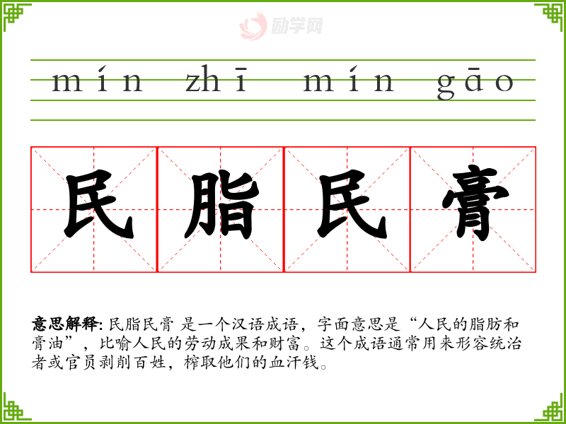 1.民脂民膏的拼音是什么?民脂民膏怎么读?