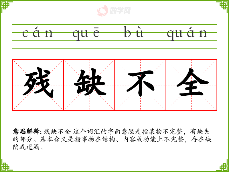 2.残缺不全是什么意思?