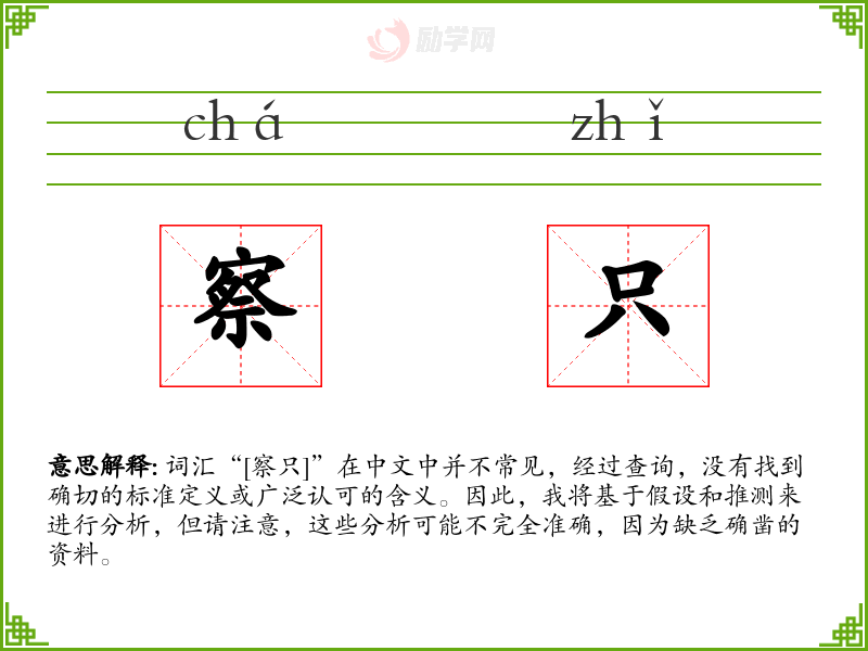 由于“[察只]”不是一个标准词汇,我们无法提供确切的字面意思和基本含义。