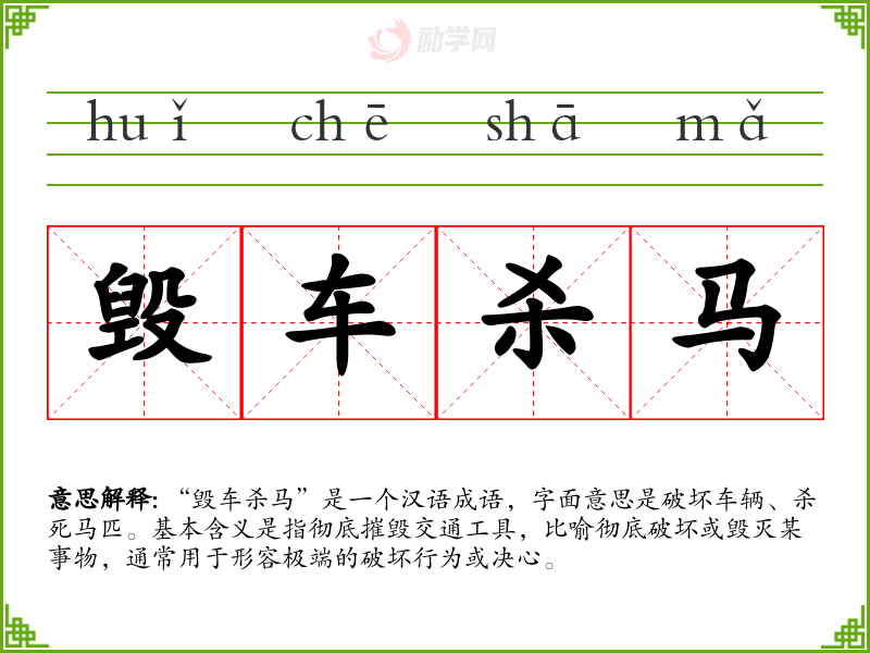 1.毁车杀马的拼音是什么?毁车杀马怎么读?