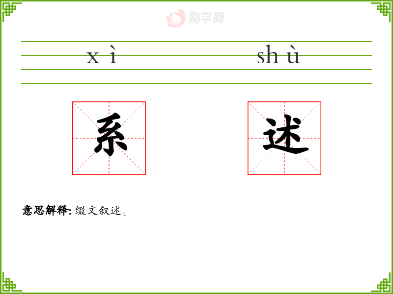《说文》-述,循也。 《诗·邶风·日月》-报我不述。 《仪礼·少牢礼》-遂述命曰。 《书·五子之歌》-述大禹之戒以作歌。